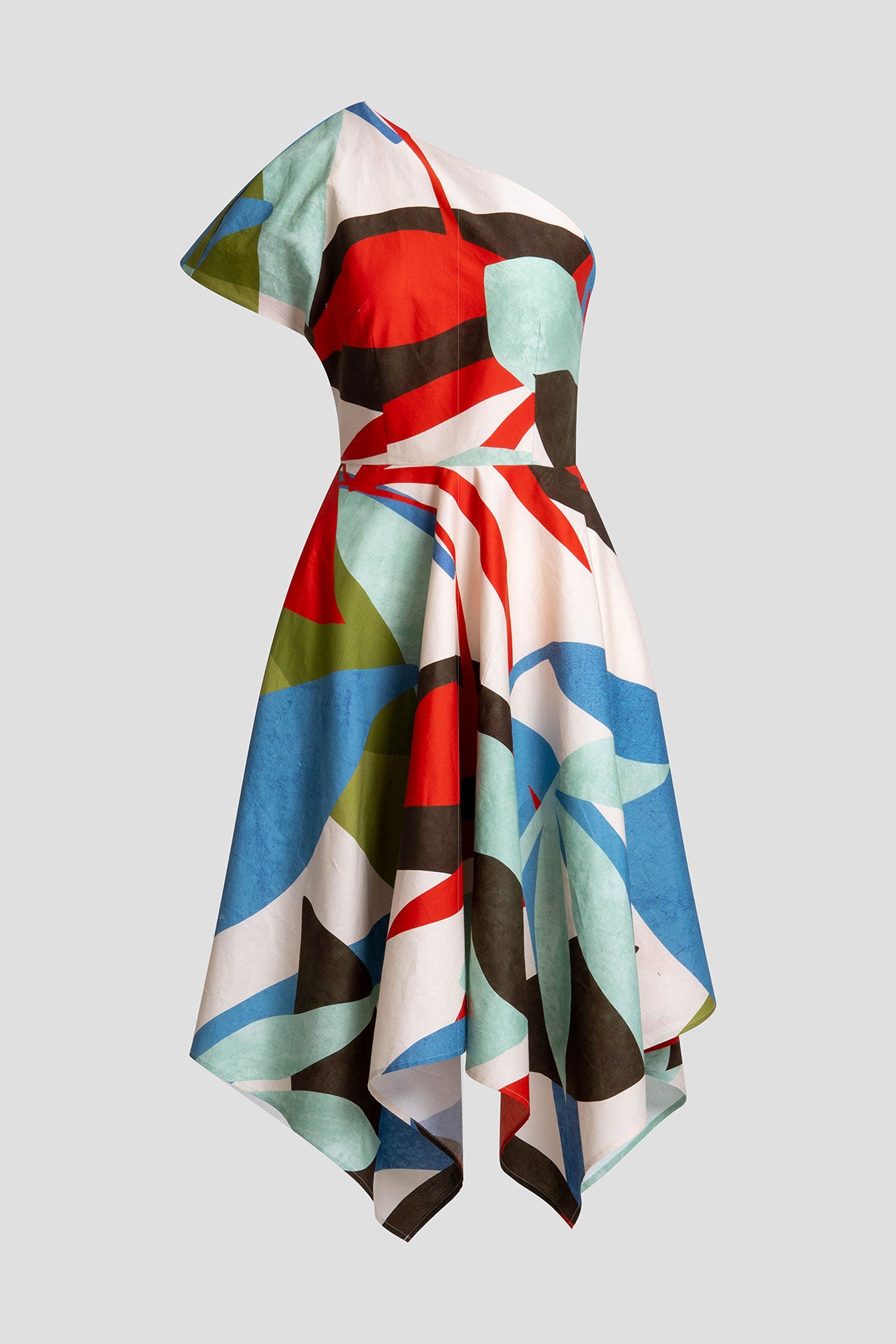 Details & Care For Abstract Palm Cotton Poplin One Shoulder Dress