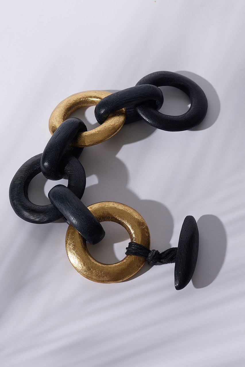 Details & Care For Acacia Wood and Gold Plated Circle Chain Link Bracelet