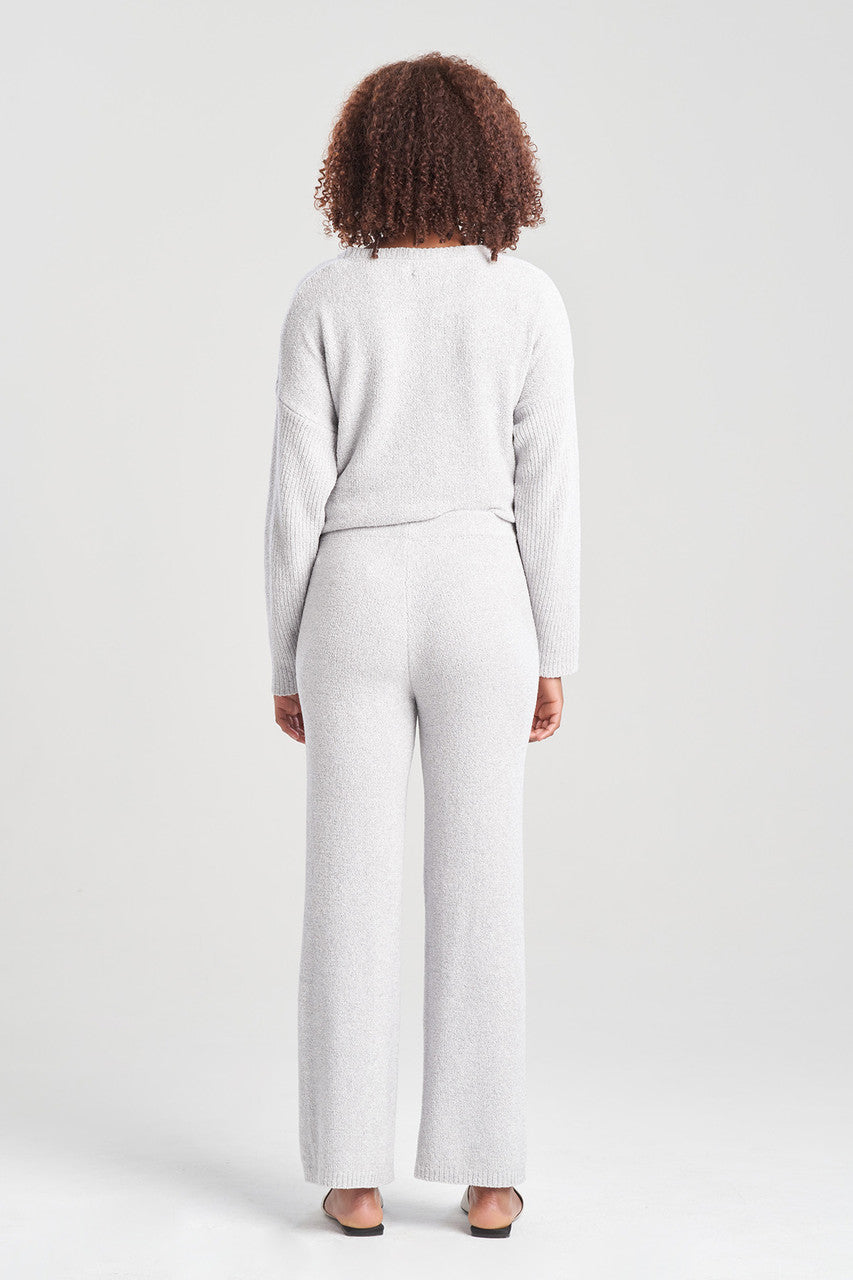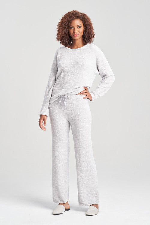 - Pullover straight leg pant with elastic waistband and drawstring with rib details on the hem