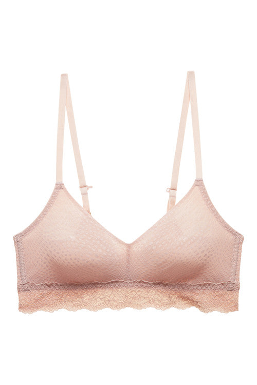 • Convertible wireless bra designed with innovative two-way stretch lace with a unique geo animal pattern and a hosiery feel