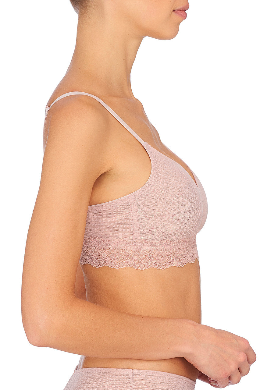 Natori's signature soft feel now offered in an everyday convertible wireless bra. Innovative moldable lace is paired with Natori exclusive floral lace to offer a romantic look and comfortable feel.