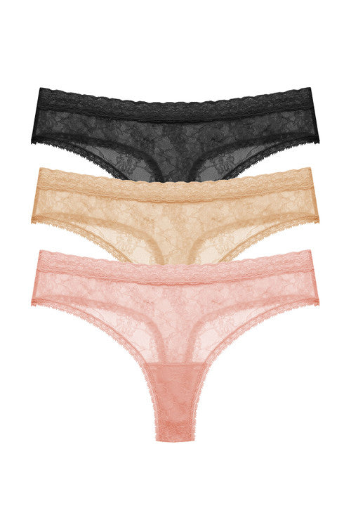 Details & Care For Bliss Allure One-Size Lace Thong 3-Pack