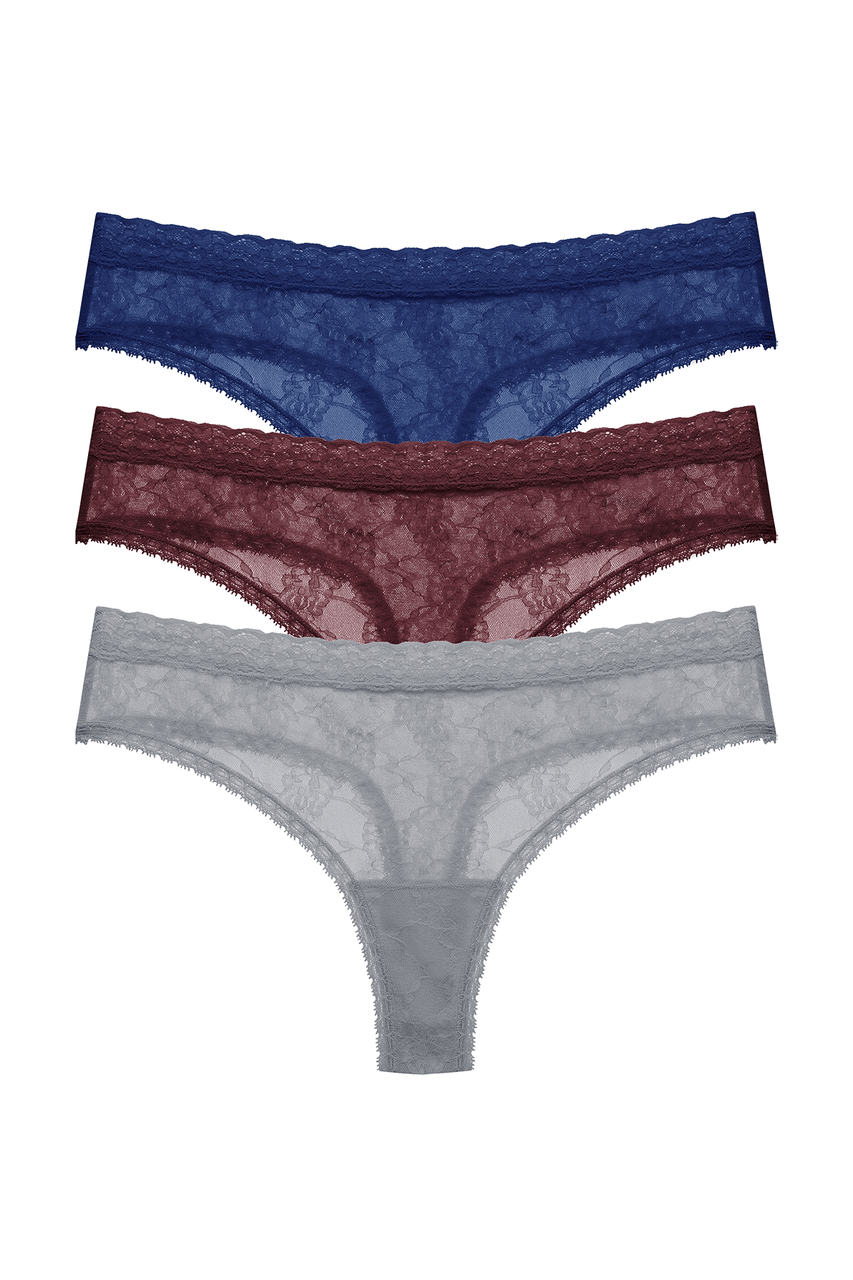 Details & Care For Bliss Allure One-Size Lace Thong 3-Pack