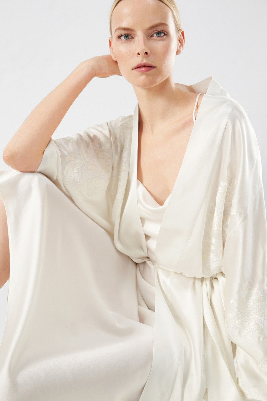 Be a vision in white in this Josie Natori silk gown with embroidery