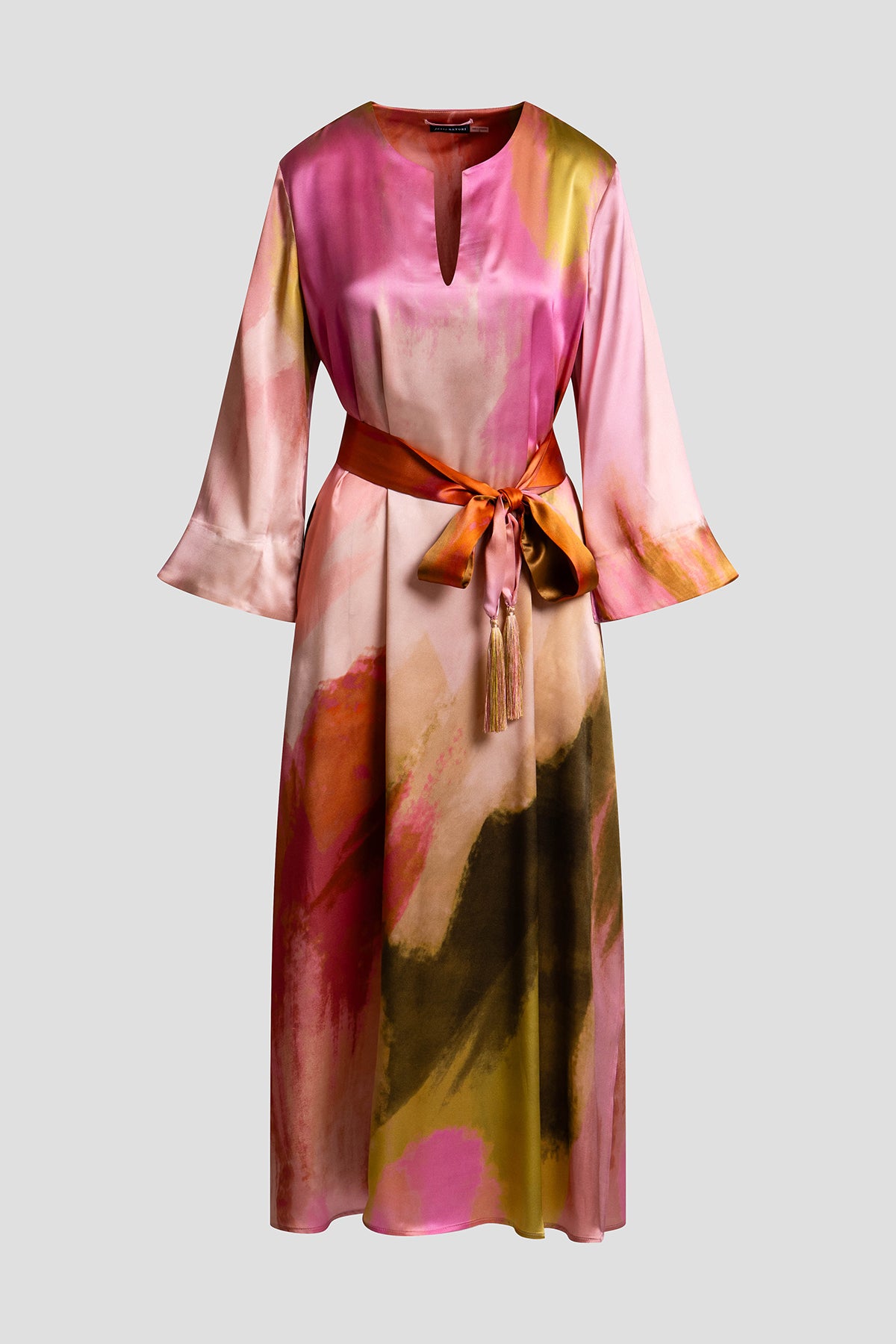 Look effortlessly put together in the artful brushstroke printed caftan dress.