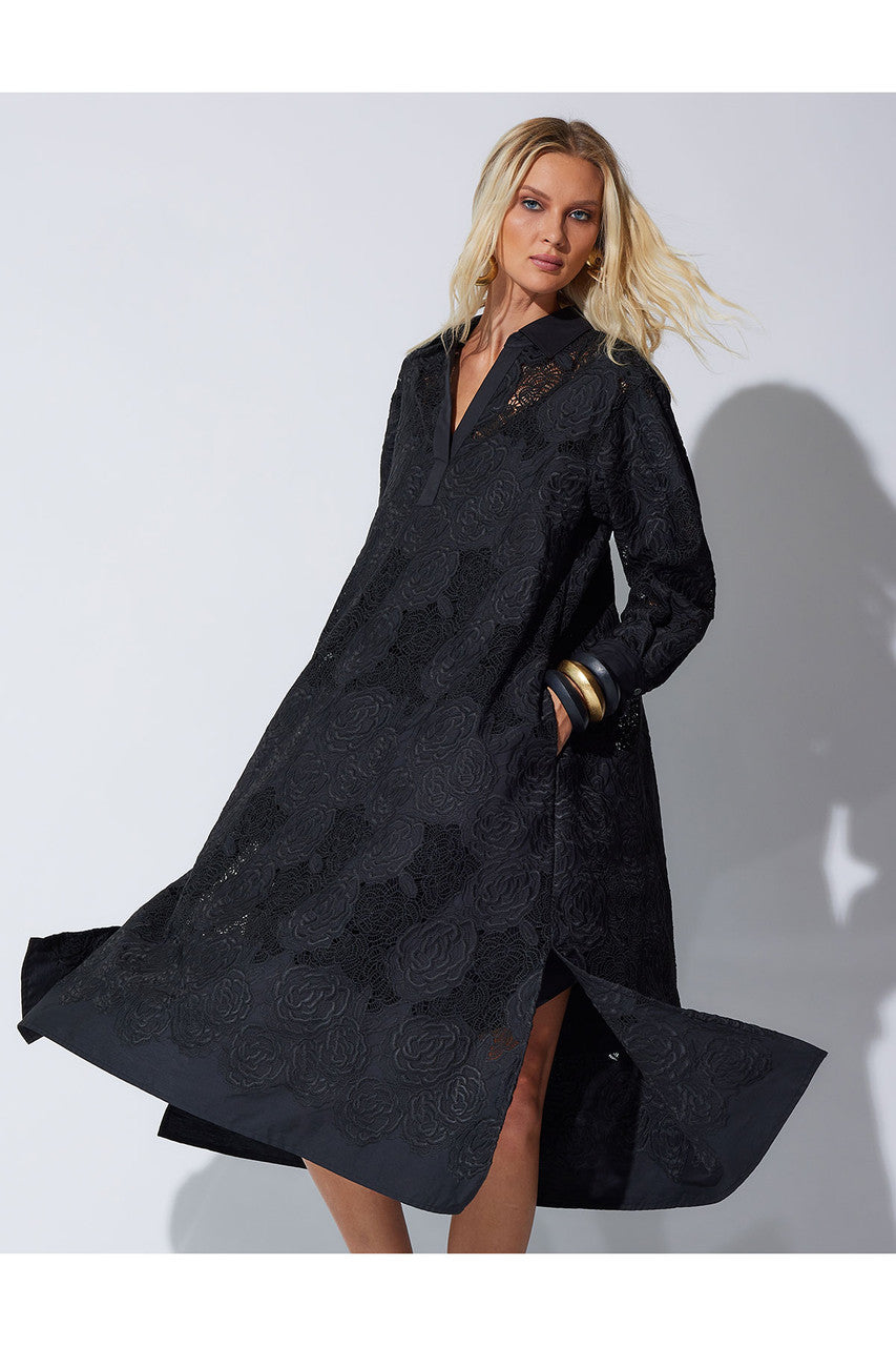- Sophisticated shirtdress silhouette in elegant floral eyelet embroidered cotton