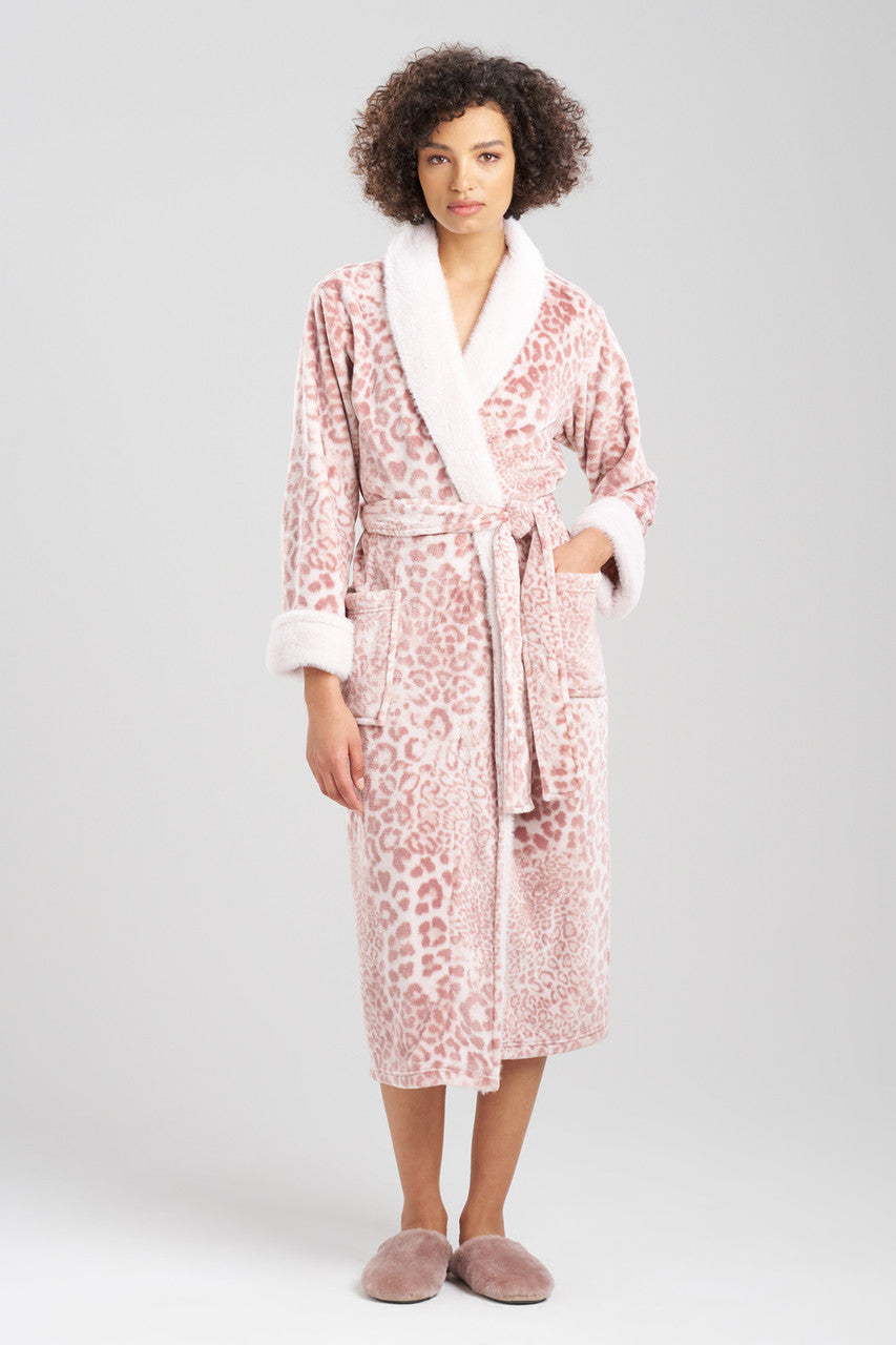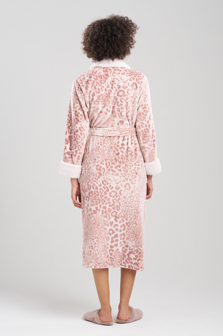 Details & Care For Cashmere Leopard Faux Fur Collar Robe