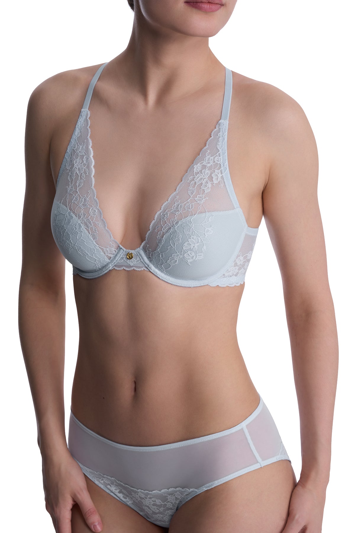 Cherry Blossom inspired lace adorns this contour underwire plunge bra.