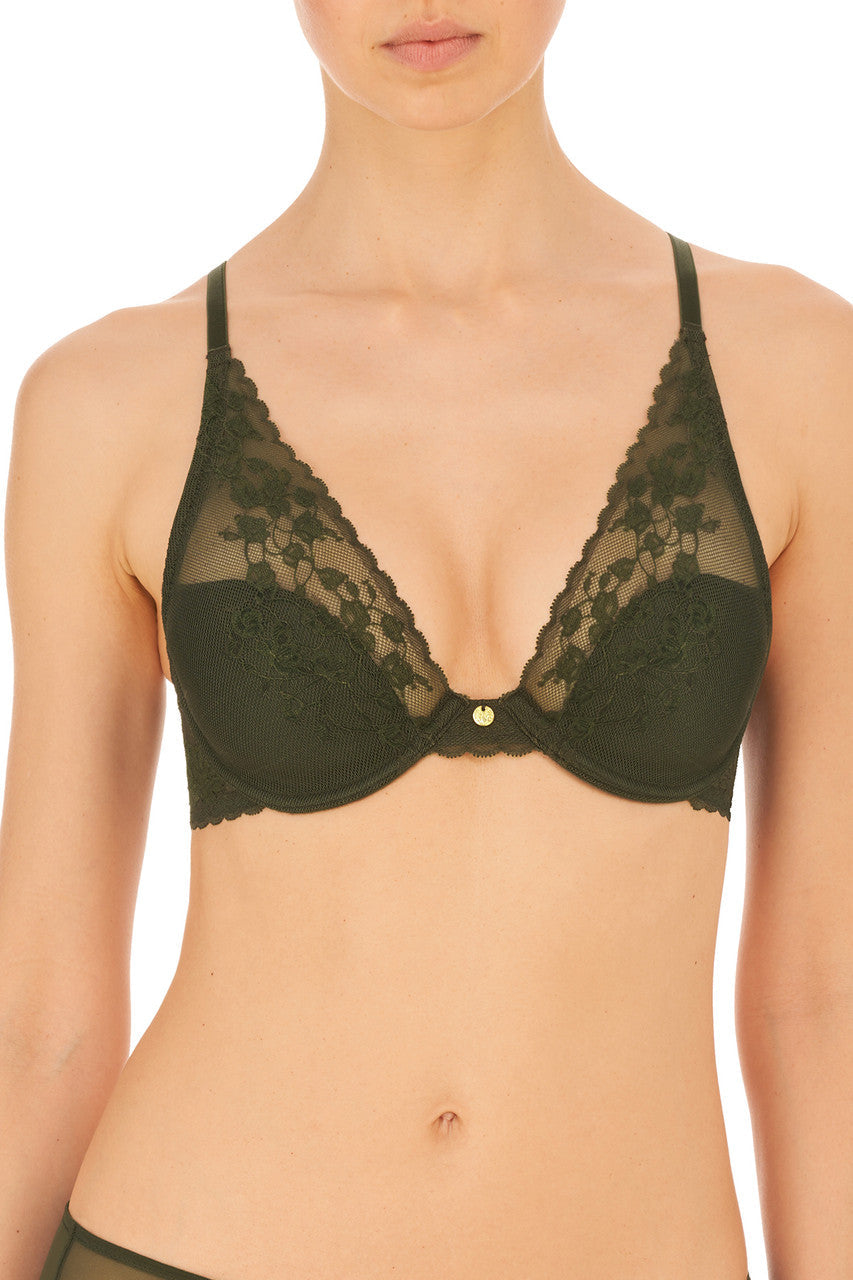 Cherry Blossom inspired lace adorns this contour underwire plunge bra.