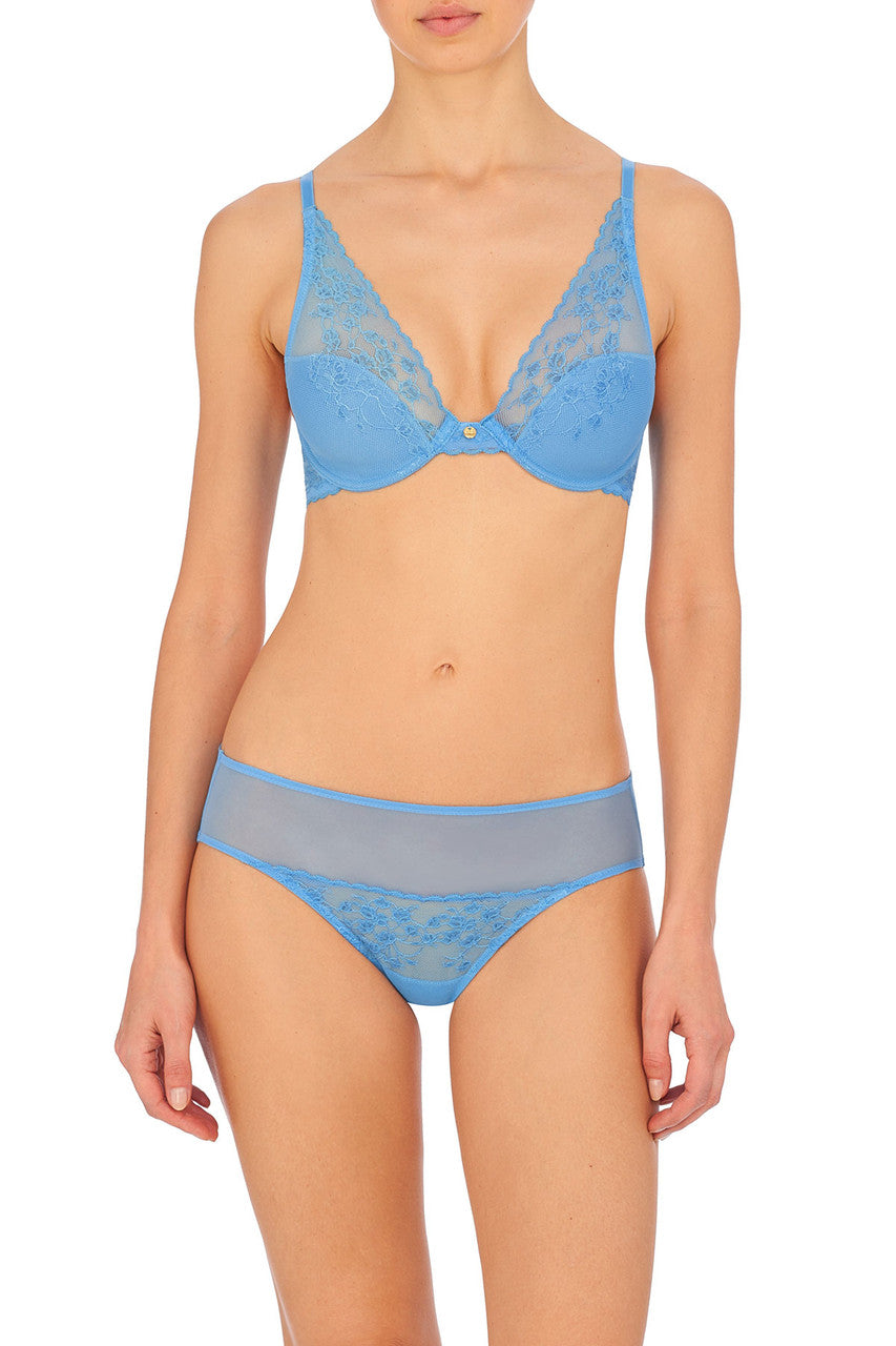 Cherry Blossom inspired lace adorns this contour underwire plunge bra.