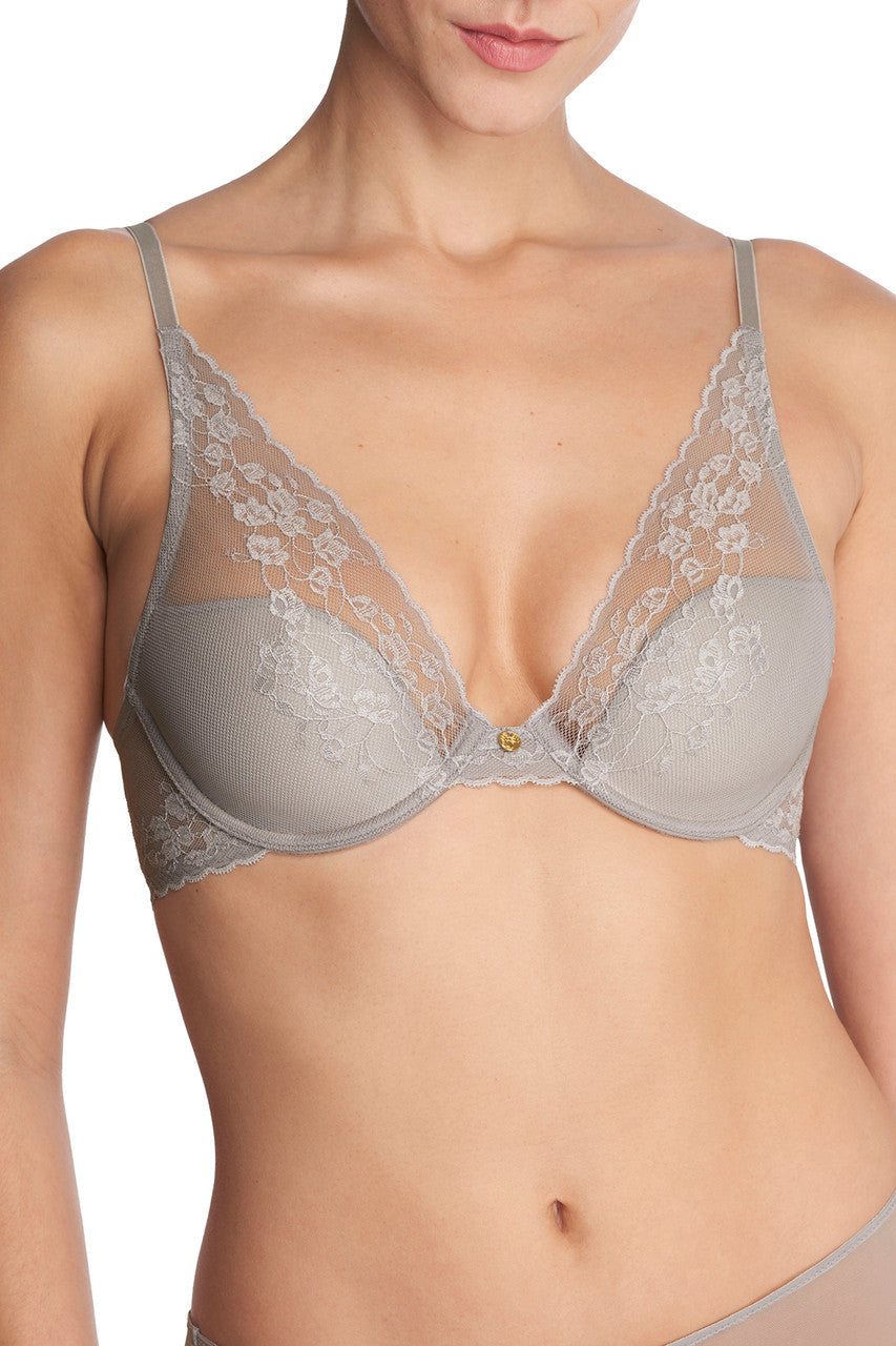 Cherry Blossom inspired lace adorns this contour underwire plunge bra.