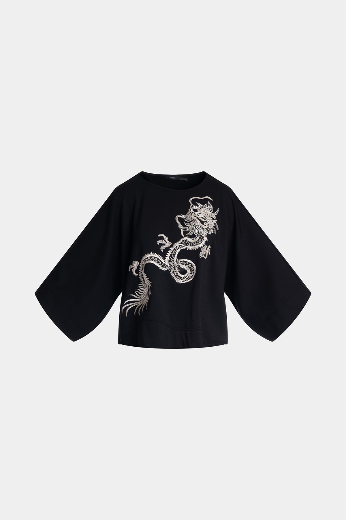 Details & Care For Cocoon Brushed French Terry Dragon Embroidered Kimono Top