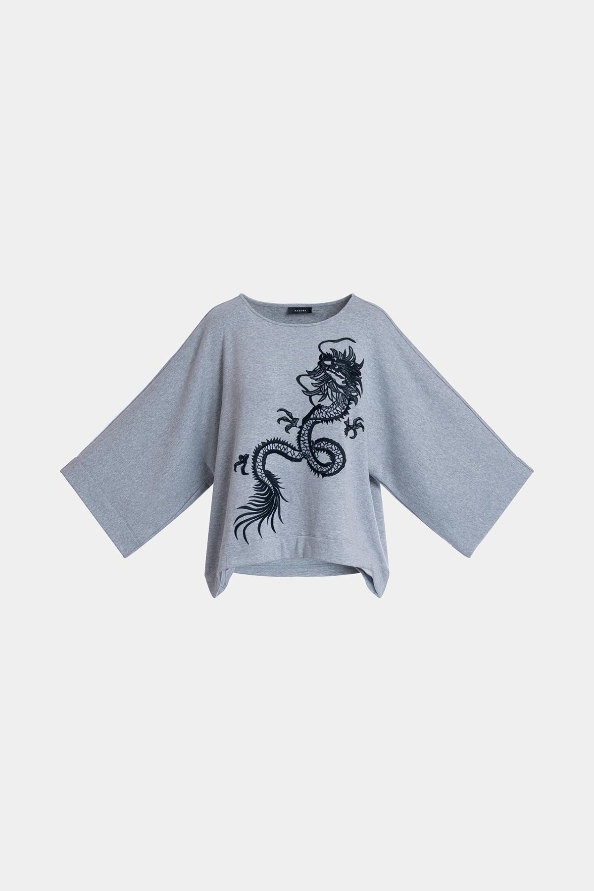 Details & Care For Cocoon Brushed French Terry Dragon Embroidered Kimono Top