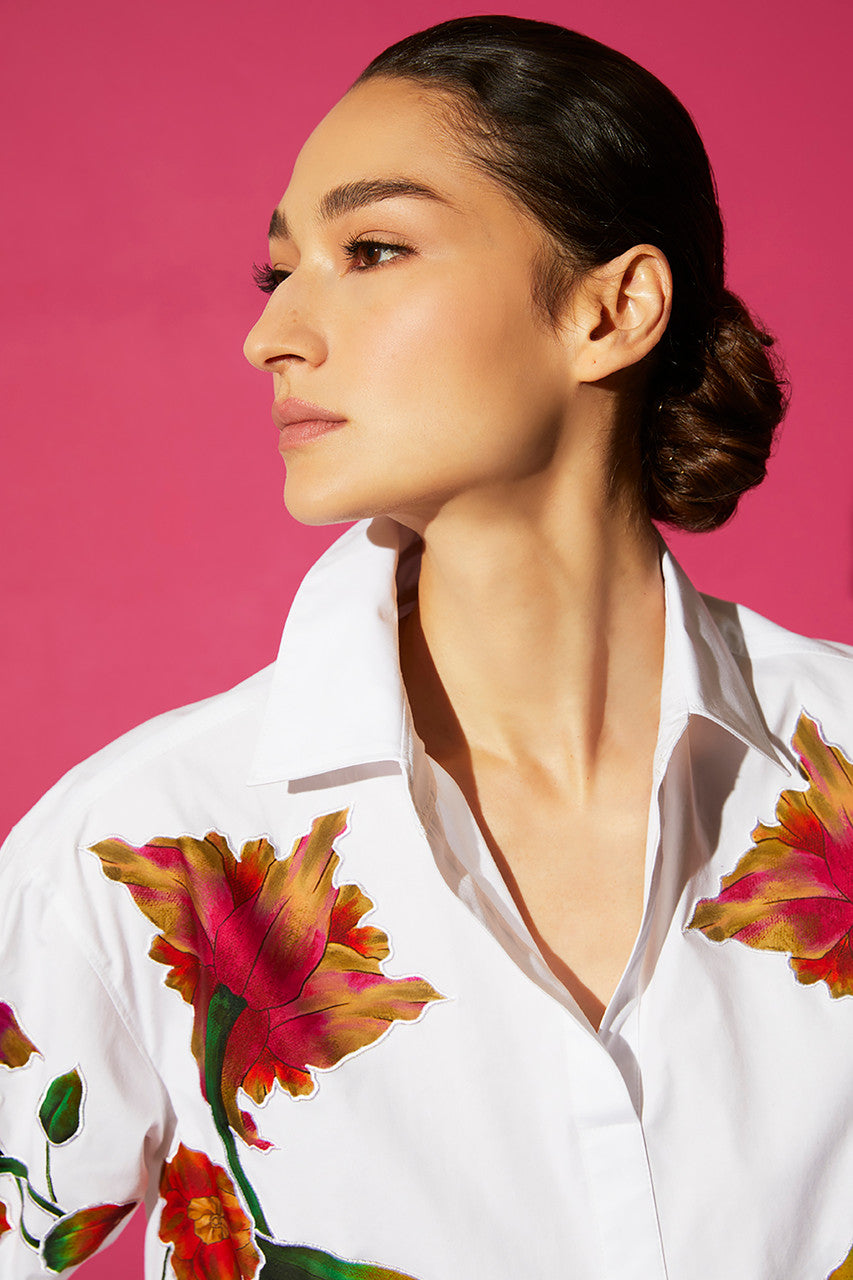 Cotton Poplin Chikayo Applique Oversized Half Placket Shirt