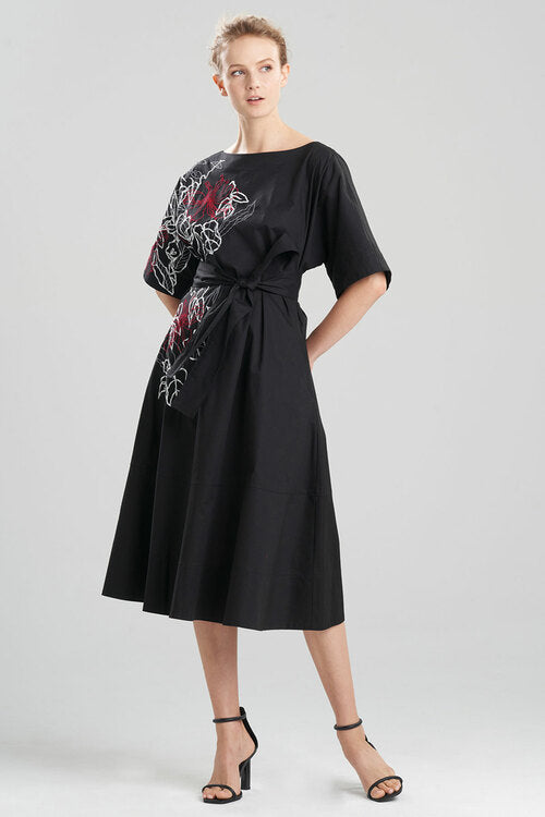 Details & Care For Cotton Poplin Embroidered Belted Dress