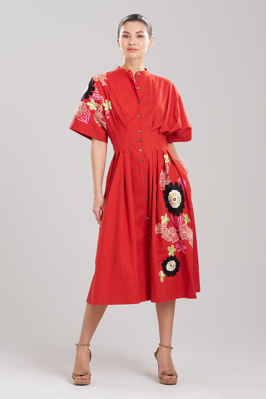 Details & Care For Cotton Poplin Embroidered Maxi Pleated Dress