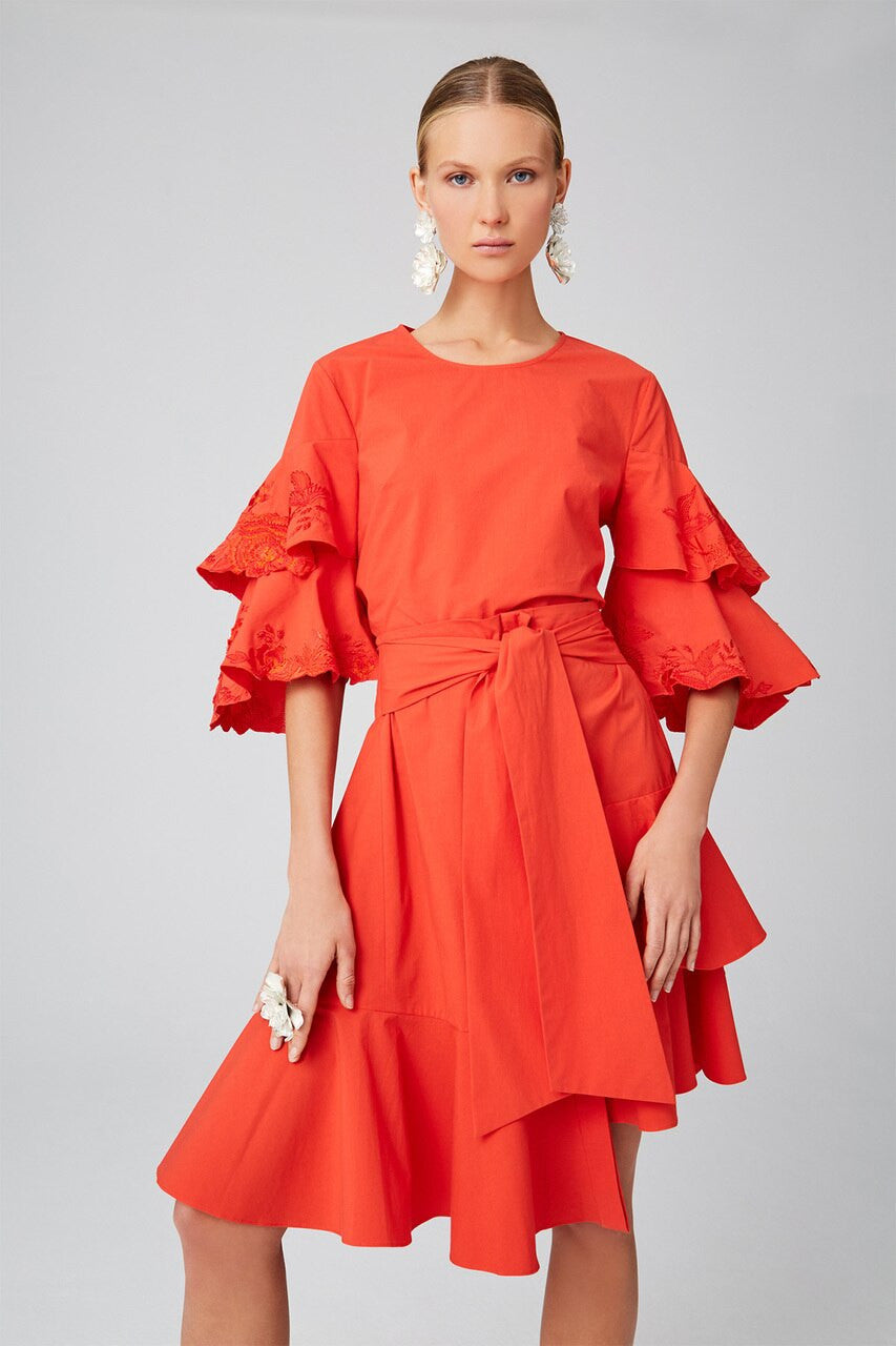 Details & Care For Cotton Poplin Tiered Sleeve Top With Embroidery