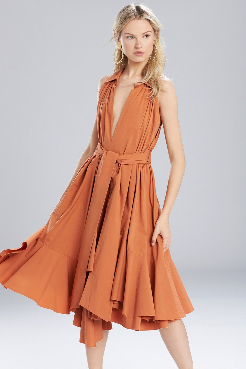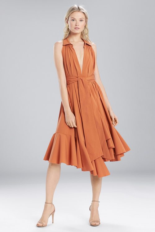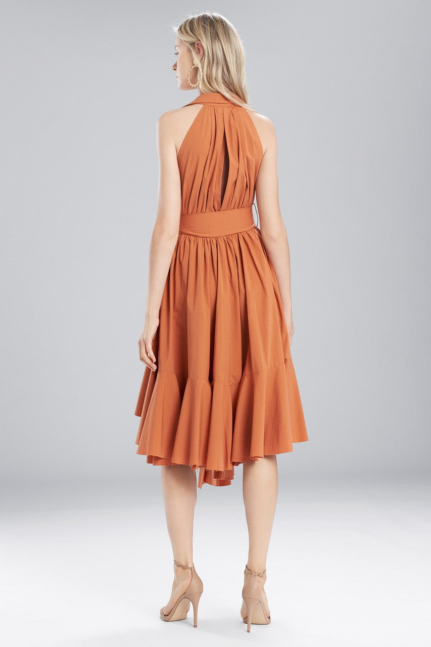 Our flouncy halter dress ties around the waist to emphasize its feminine silhouette while the collared neckline keeps it classy and sophisticated for a day at work