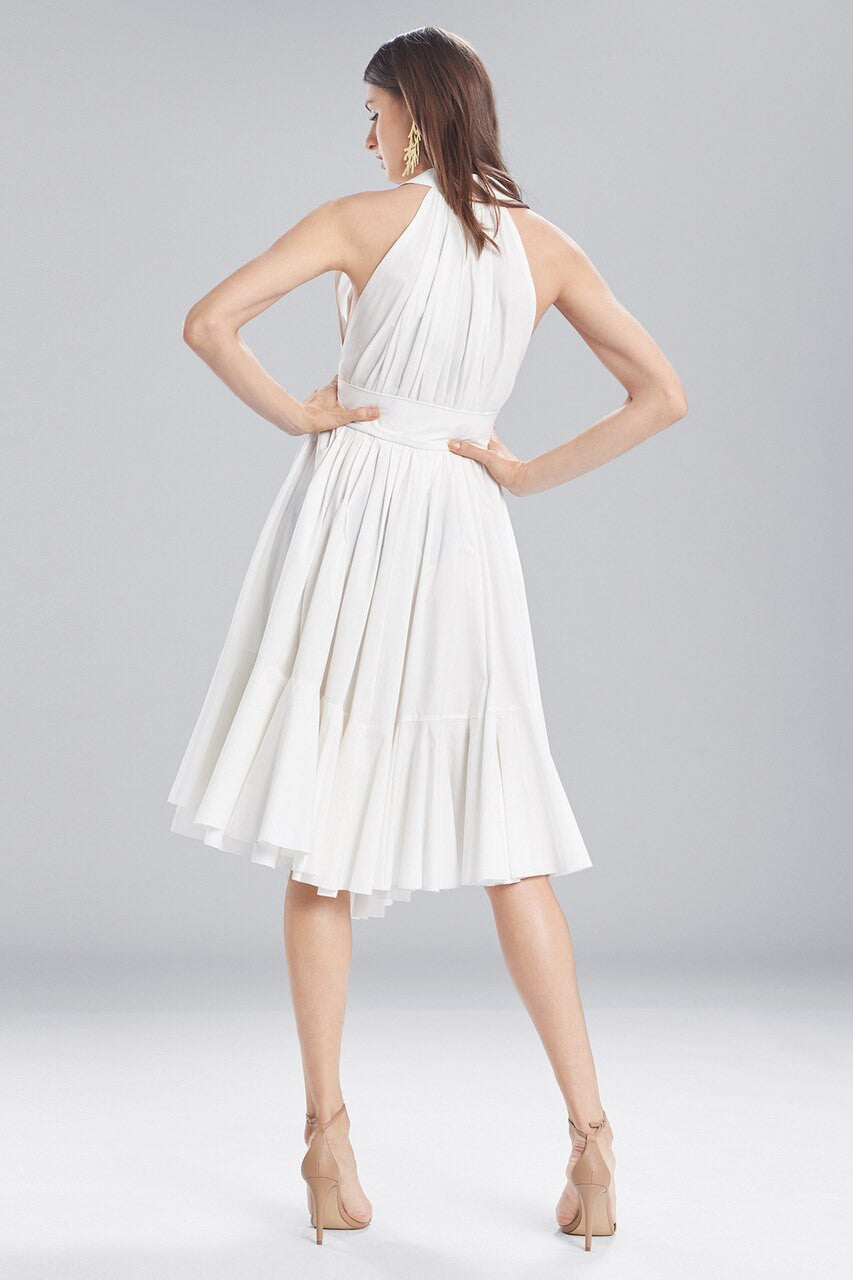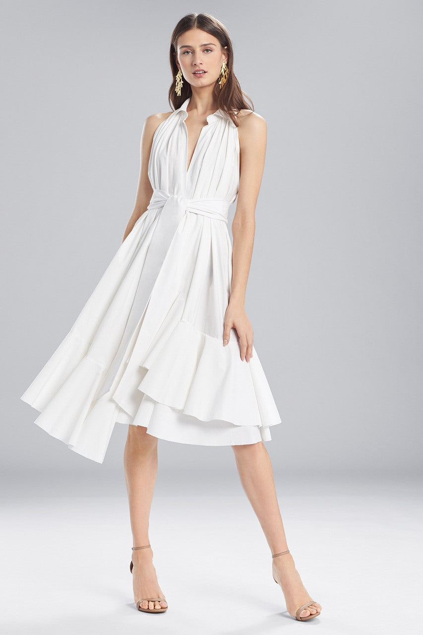 Our flouncy halter dress ties around the waist to emphasize its feminine silhouette while the collared neckline keeps it classy and sophisticated for a day at work