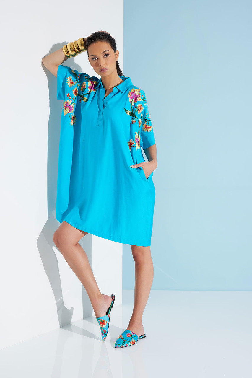 Details & Care For Cotton Silk Chikayo Embroidered Caftan Dress