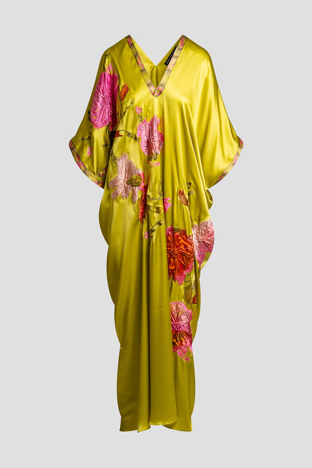 Couture Brushstroke Embellished Cocoon Silk Caftan