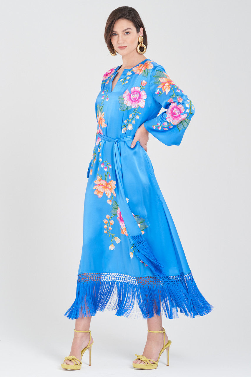Details & Care For Couture Hanabi Embroidered Fringe Silk Caftan