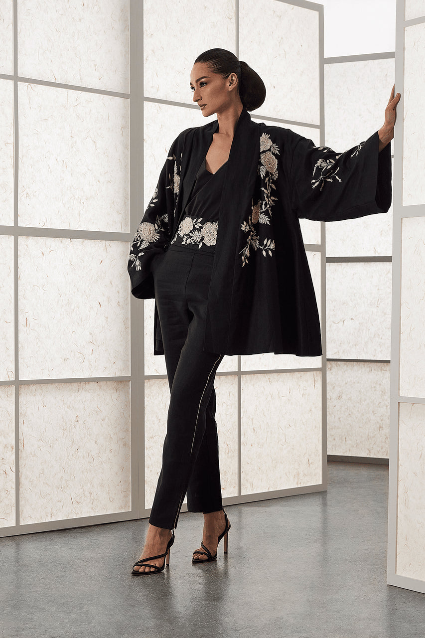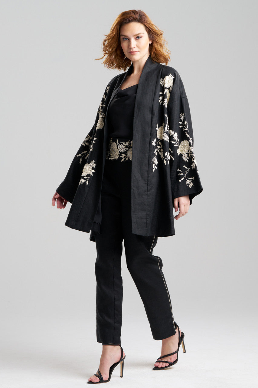 Details & Care For Couture Luxe Linen Embroidered Kimono Jacket