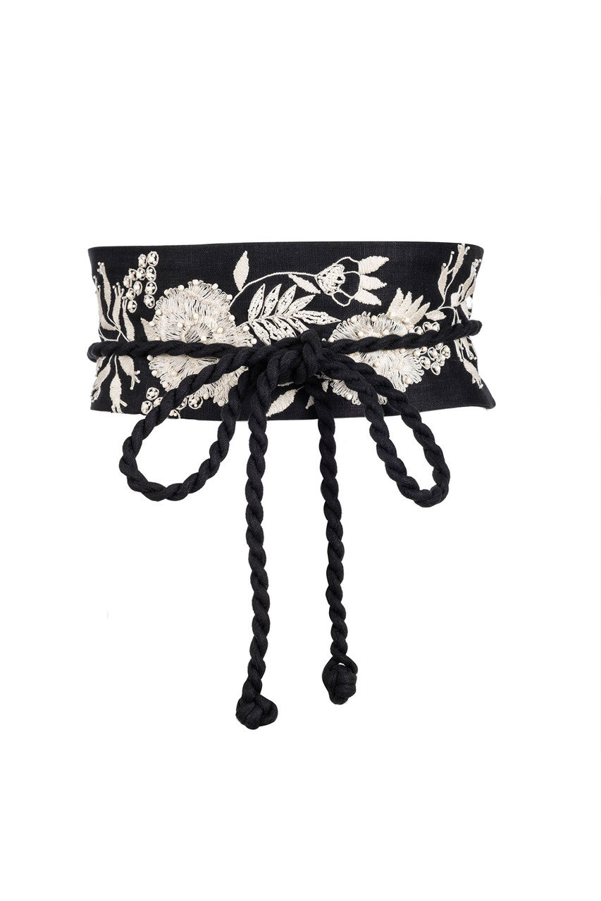 Details & Care For Couture Luxe Linen Embroidered Obi Belt