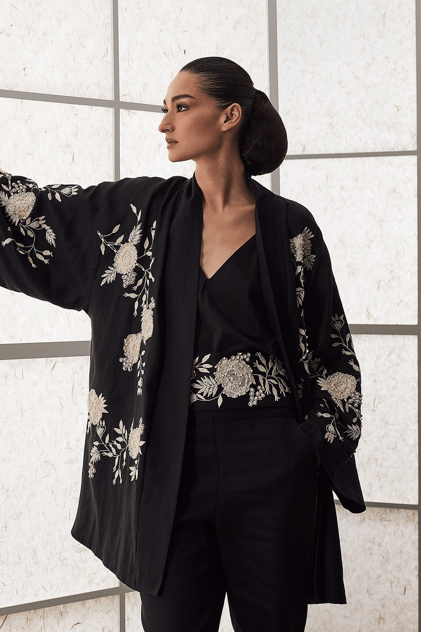 Inspired by an East meets West sensibility featuring embroidery detail.