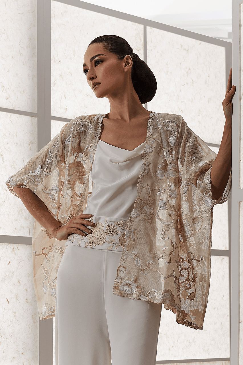 The Josie Natori Fall 2023 Couture collection focuses on curating a wardrobe of collectables, with an emphasis on kimono jackets, coats, and layering pieces. Inspired by the opulence of the Orient Express and Josie’s craftmanship meets comfort mentality.