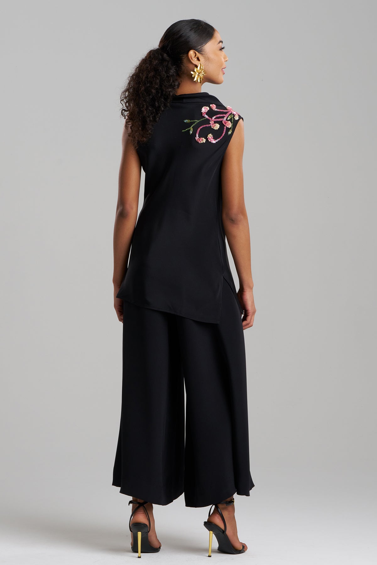 Details & Care For Couture Silk Crepe Embellished Funnel Neck Top