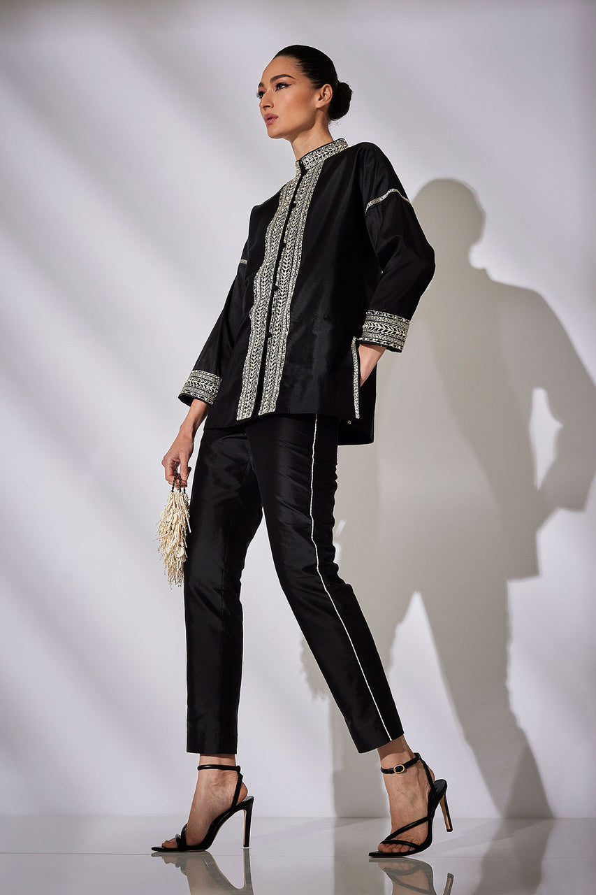 Details & Care For Couture Silk Dupioni Embroidered Mandarin Jacket