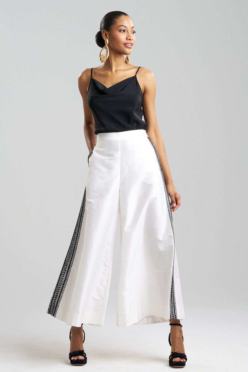 Details & Care For Couture Silk Dupioni Embroidered Trim Palazzo Pants