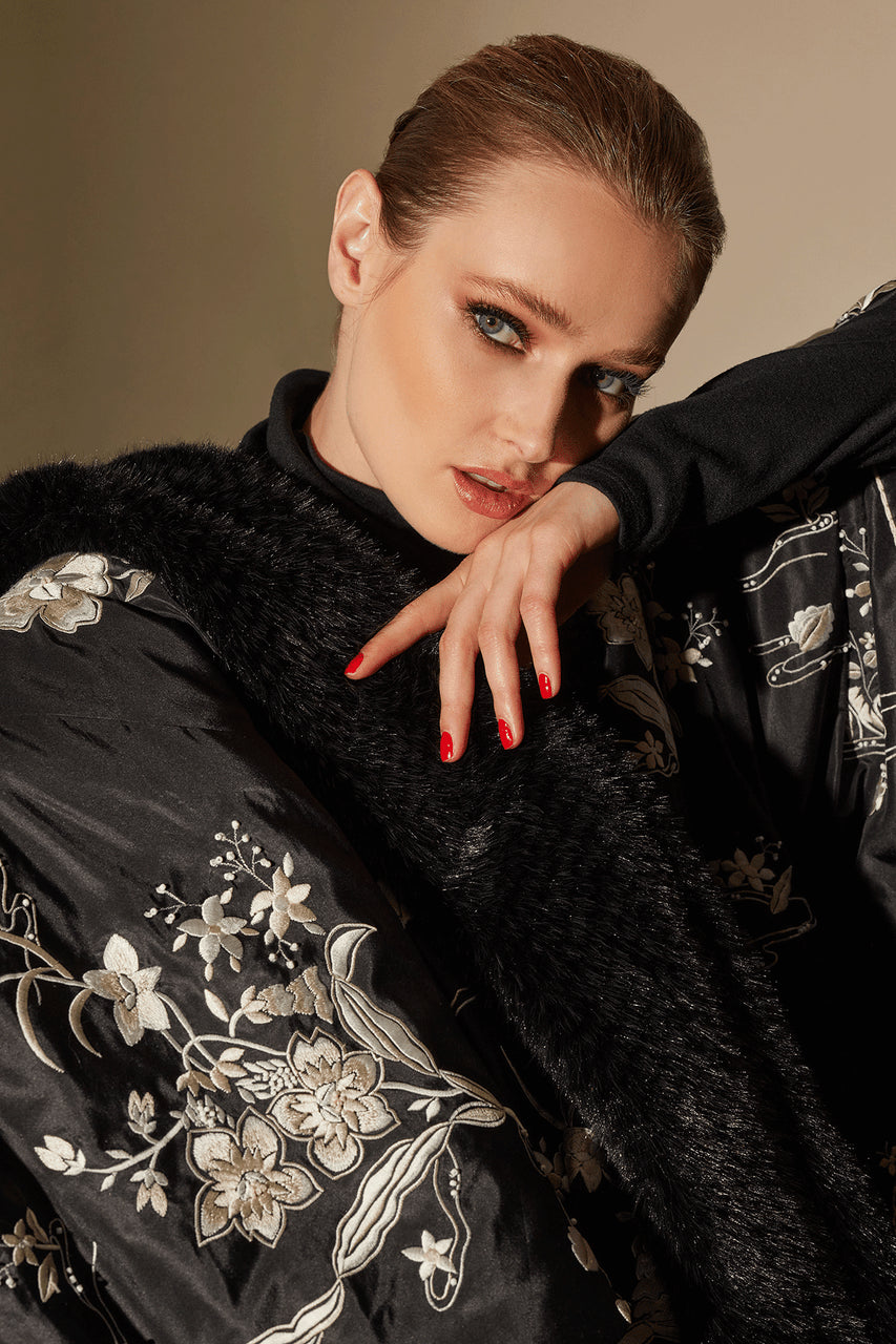 The Josie Natori Fall 2023 Couture collection focuses on curating a wardrobe of collectables, with an emphasis on kimono jackets, coats, and layering pieces. Inspired by the opulence of the Orient Express and Josie’s craftmanship meets comfort mentality.