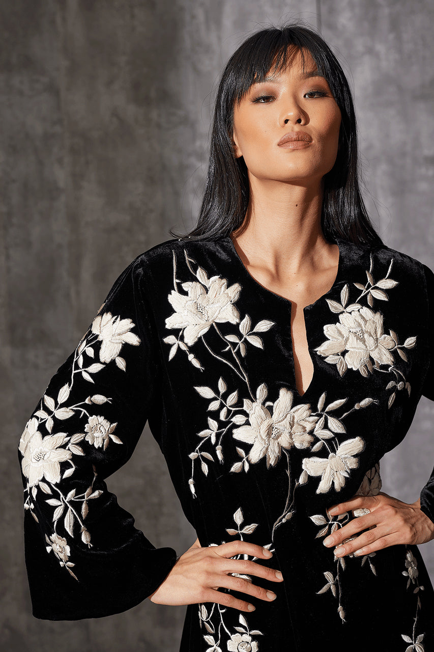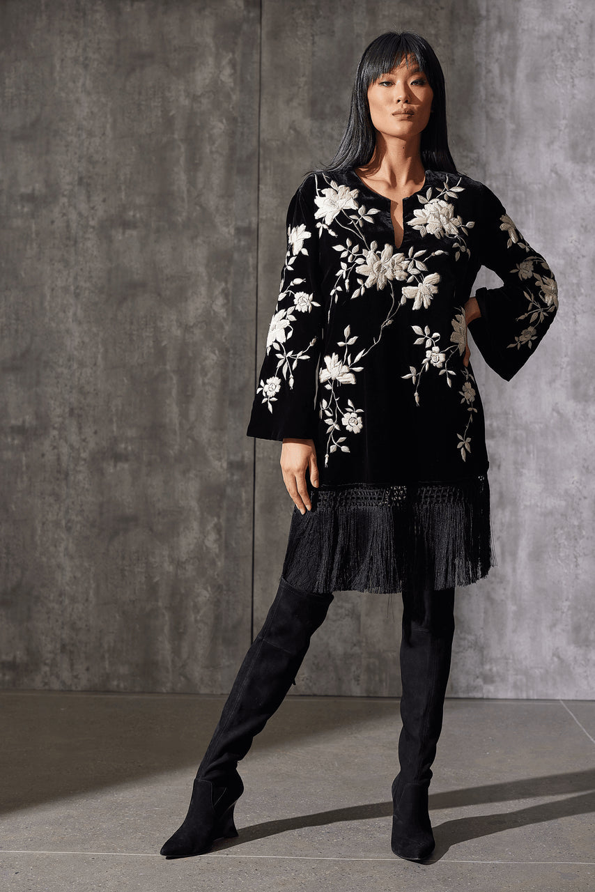 Details & Care For Couture Velvet Silk Embroidered Fringe Tunic