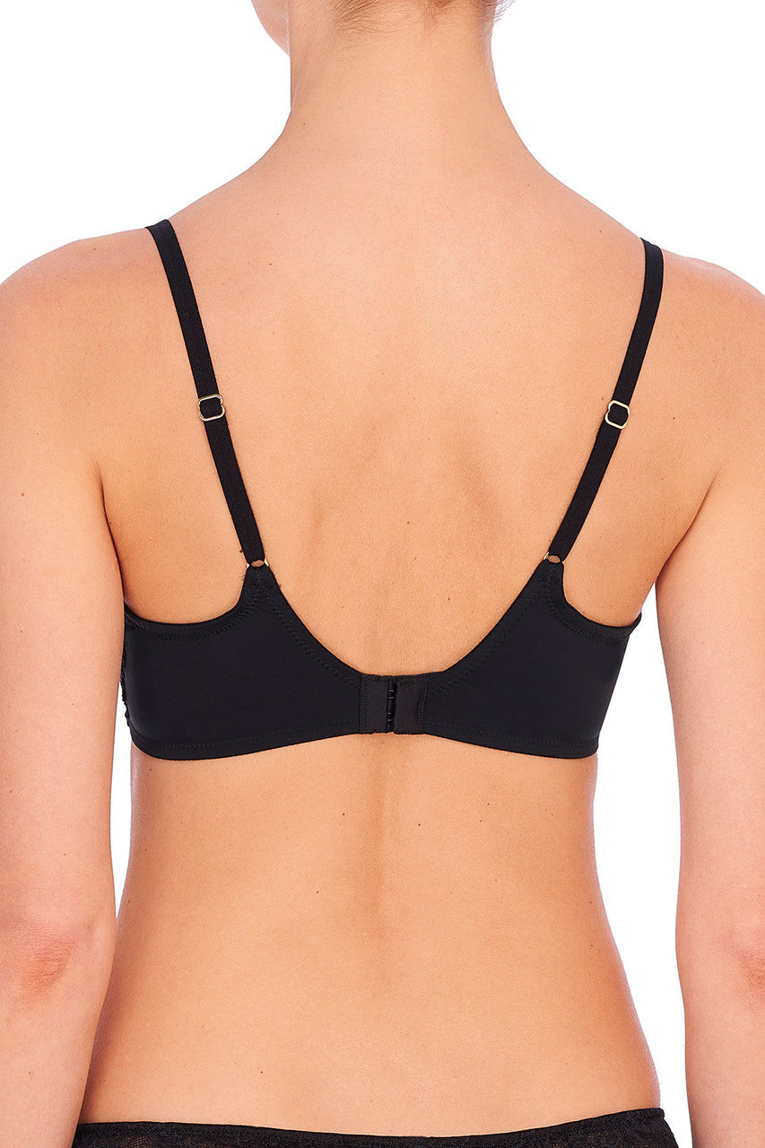 Delicate stretch lace cups transition into 1 ply stretch jersey fabric backs for beauty and comfort