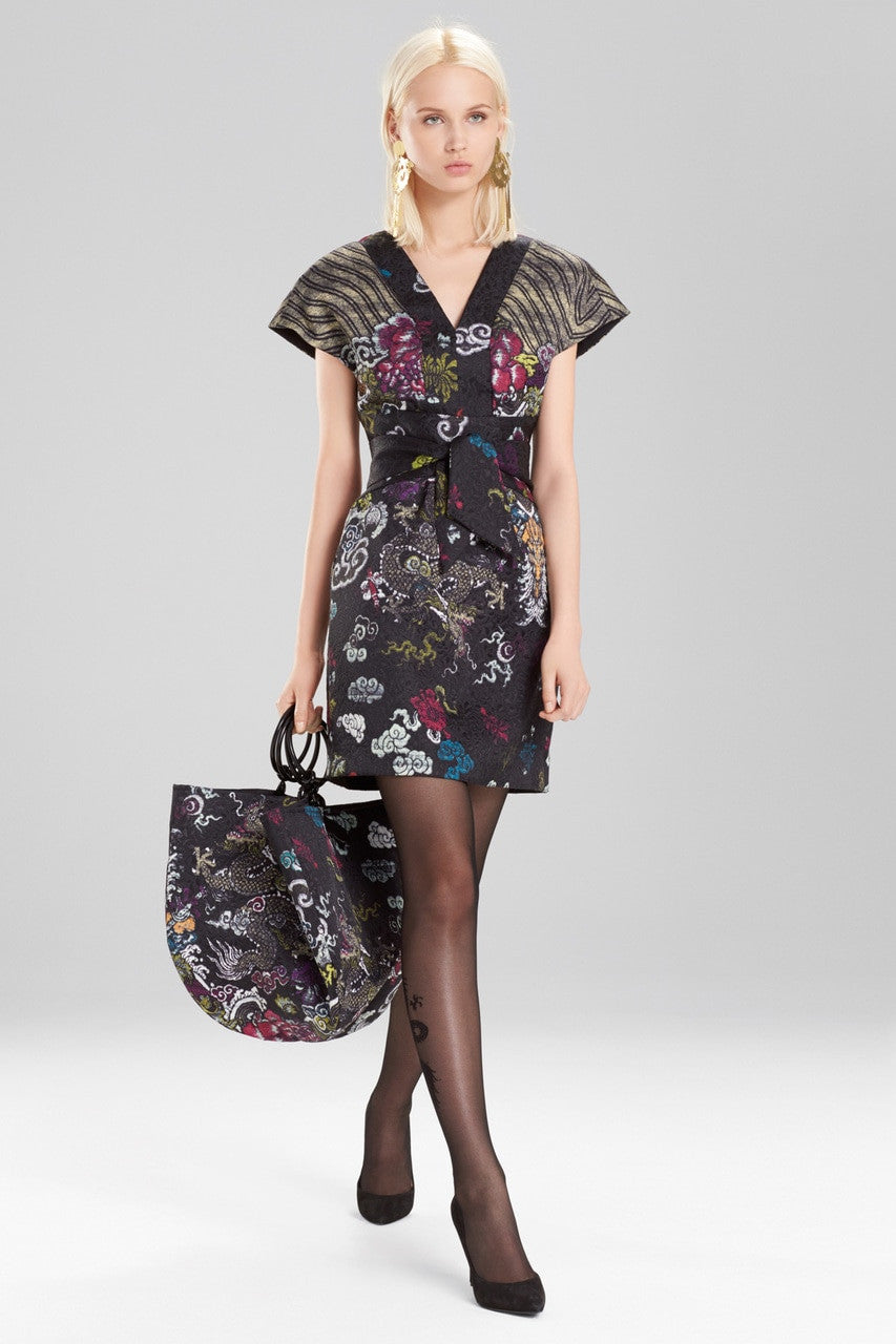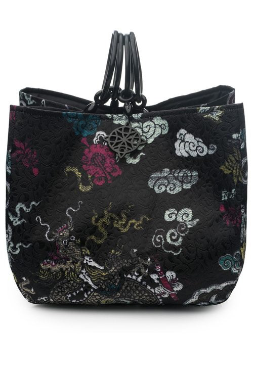 Give your outfit something that sets it apart with this gorgeous dragon jacquard bag with horn handles