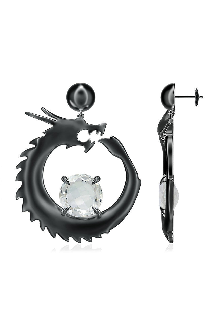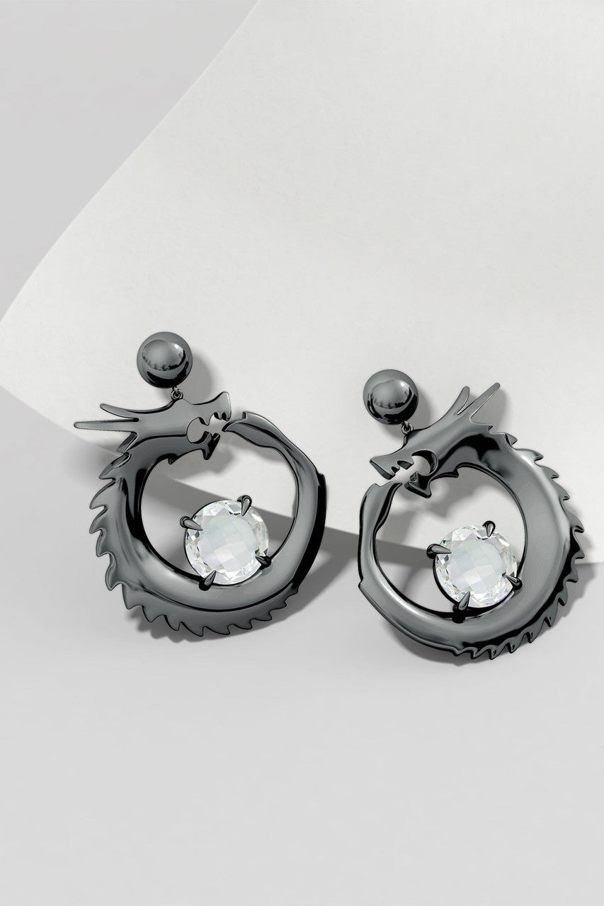 Details & Care For Dragon Midnight Silver and White Topaz Dangler Earrings