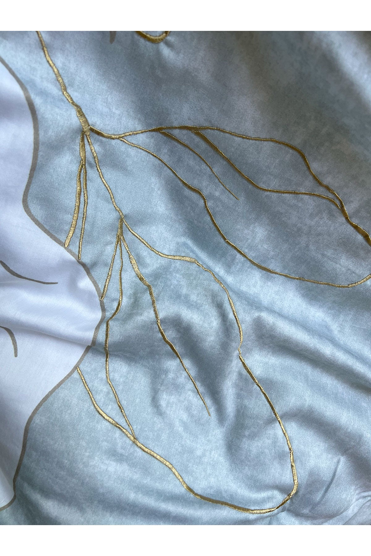 - Comforter and sham face: 60% cotton, 35% lyocell print with metallic embroidery