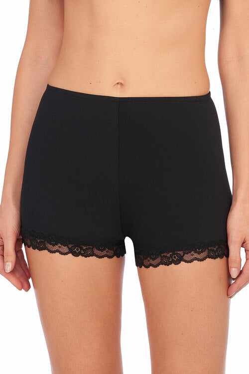 Super soft Pima Cotton high rise short can be worn as a breathable layer under skirts, dresses, and jumpsuits or as a set to pair with the lace trim cami. 3" inseam; bottom of lace hits at upper thigh