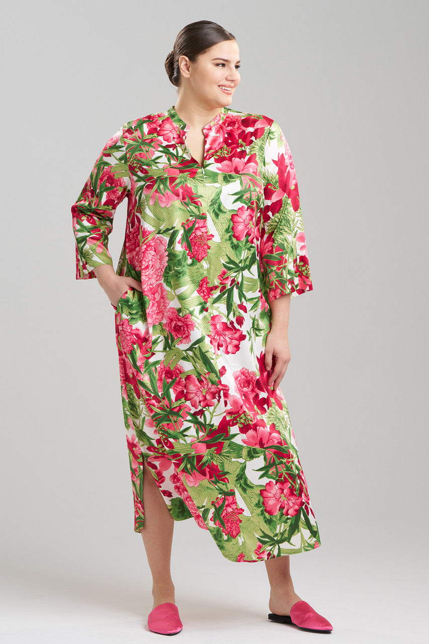 Details & Care For Enchanted Peony Satin Zip Caftan