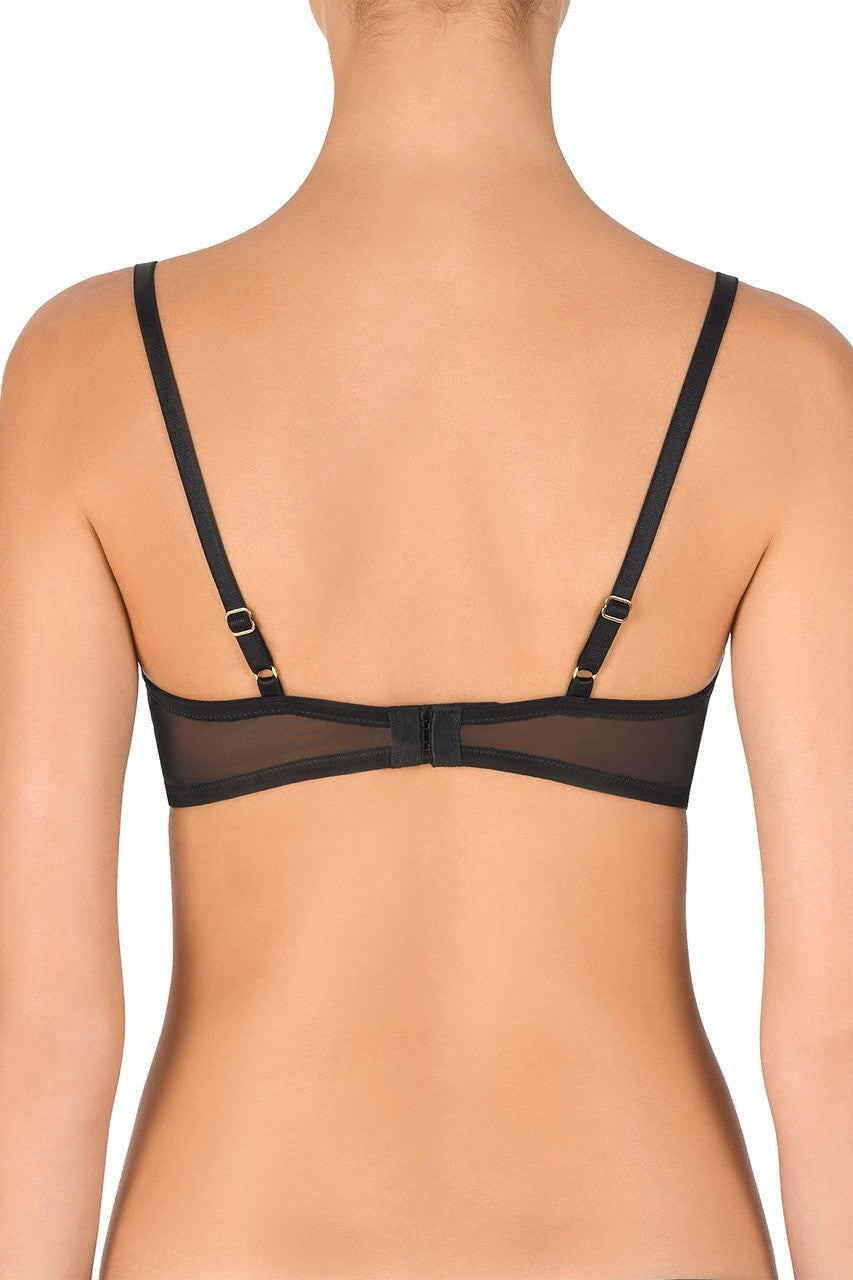 Romantic Swiss floral embroidery combined with luxe fabrics elevate this demi silhouette