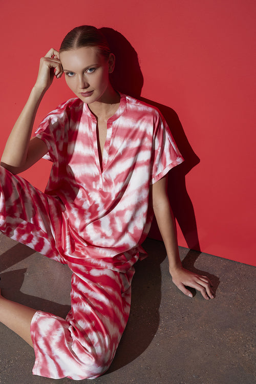 Details & Care For Ethereal Tiger - Satin PJ - coral pink