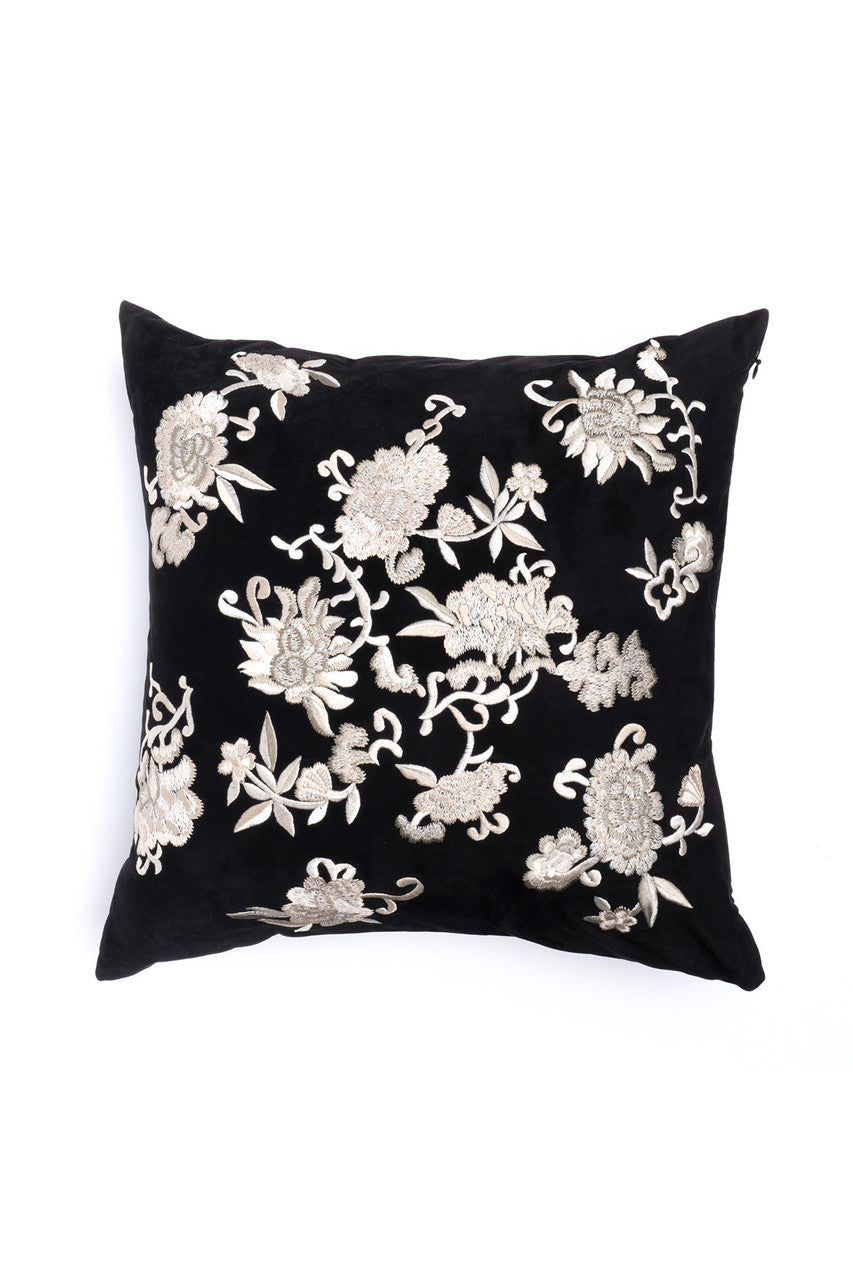 Details & Care For Faux Suede Mandarin Embroidered Pillow