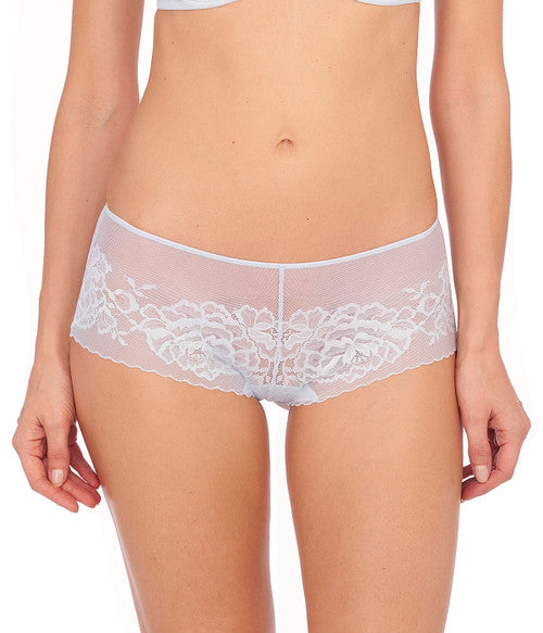 • Scalloped edge lace with no elastic at legs eliminates dig-ins