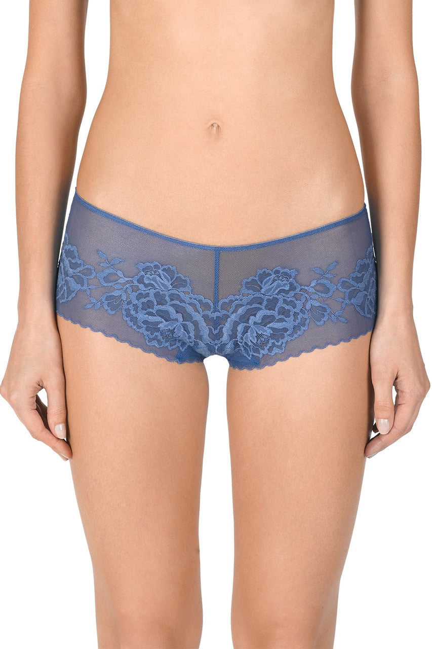 • Scalloped edge lace with no elastic at legs eliminates dig-ins