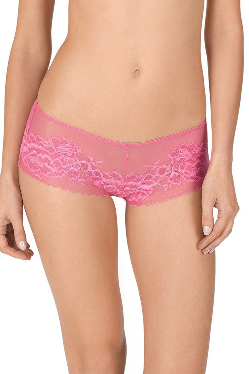 • Scalloped edge lace with no elastic at legs eliminates dig-ins
