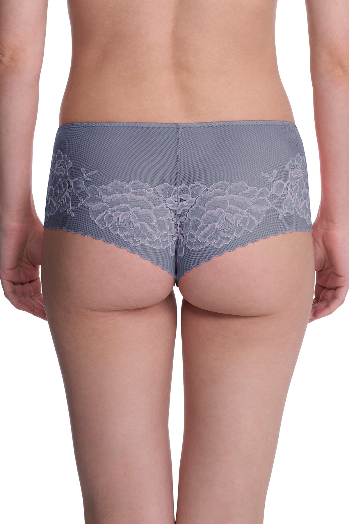 - Scalloped edge lace with no elastic at legs eliminates dig ins