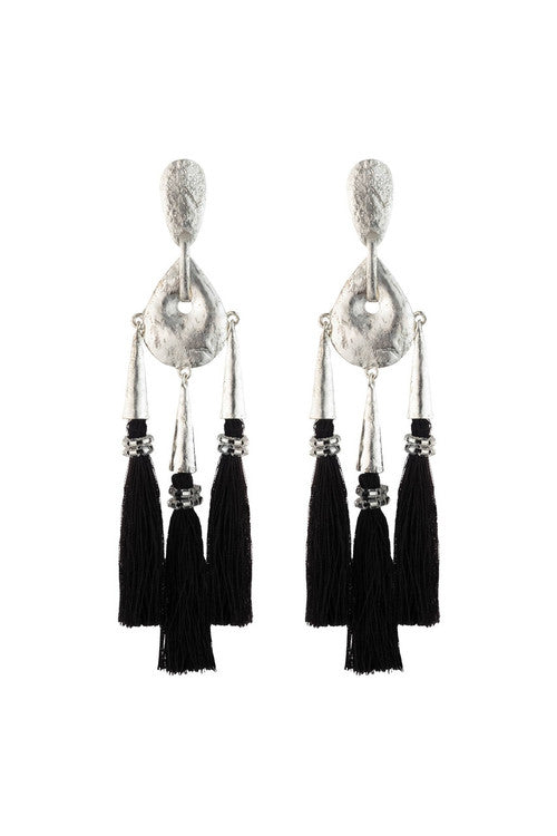 Gold Plated Brass Black Fringe Clip Earrings