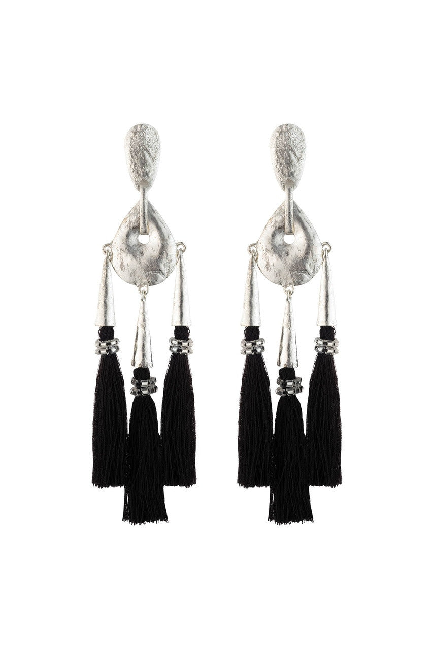 Details & Care For Gold Plated Brass Black Fringe Clip Earrings